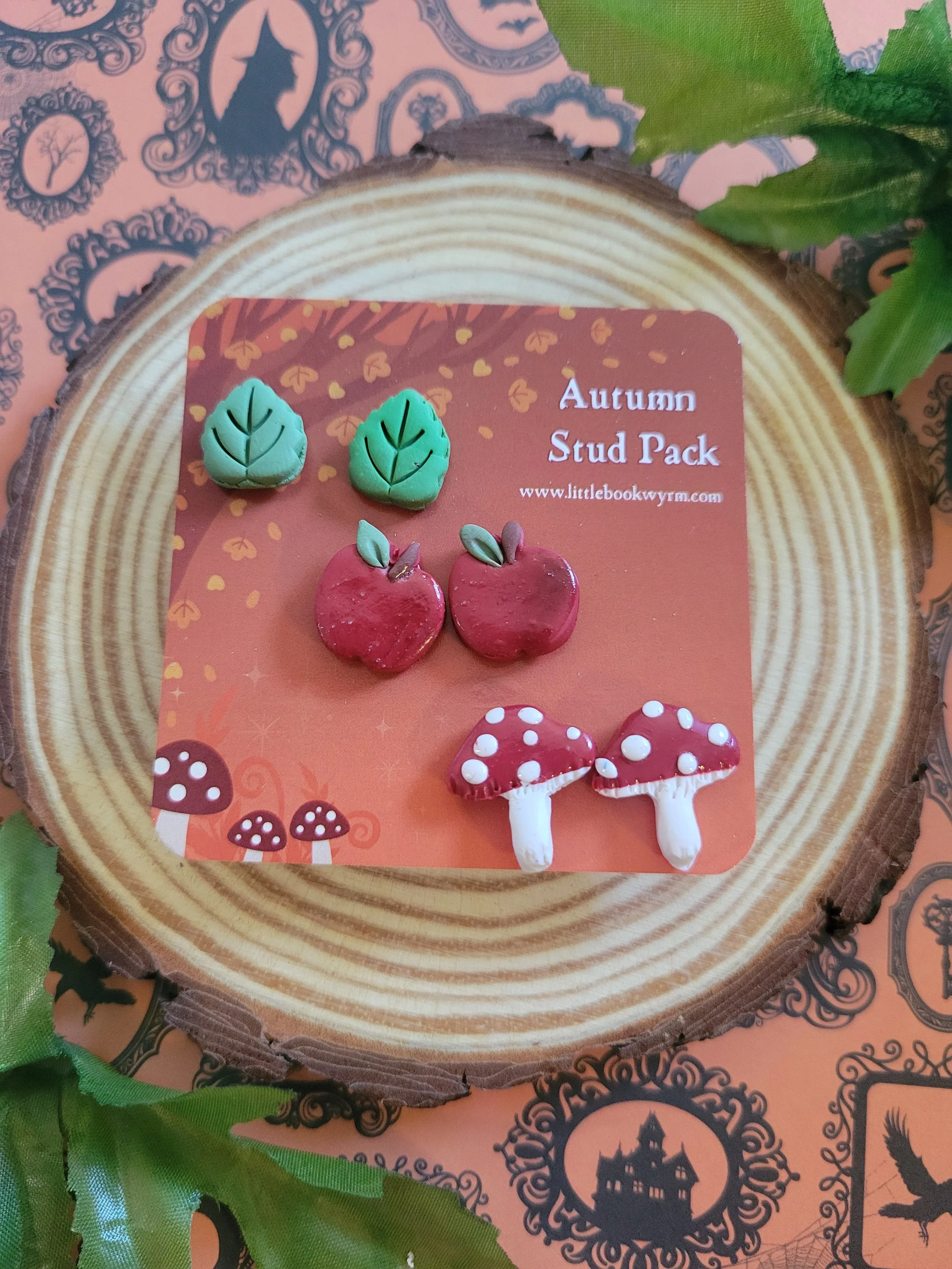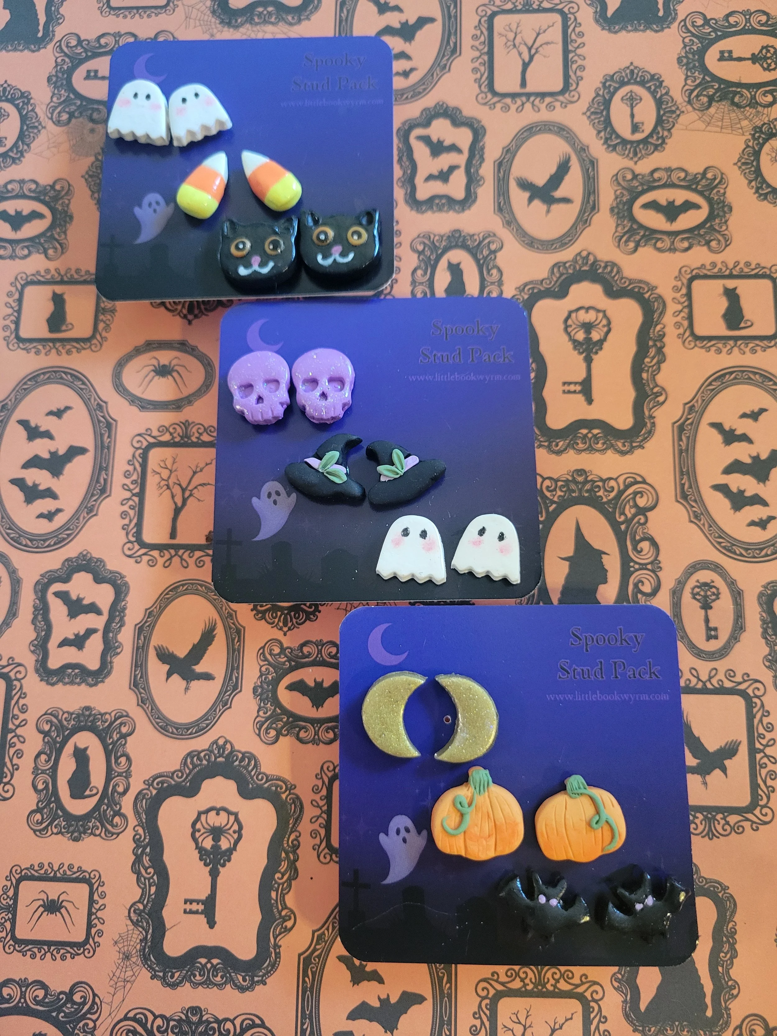 These themed stud packs come in 6 different designs and include three sets of handmade polymer clay studs on stainless steel stud posts.