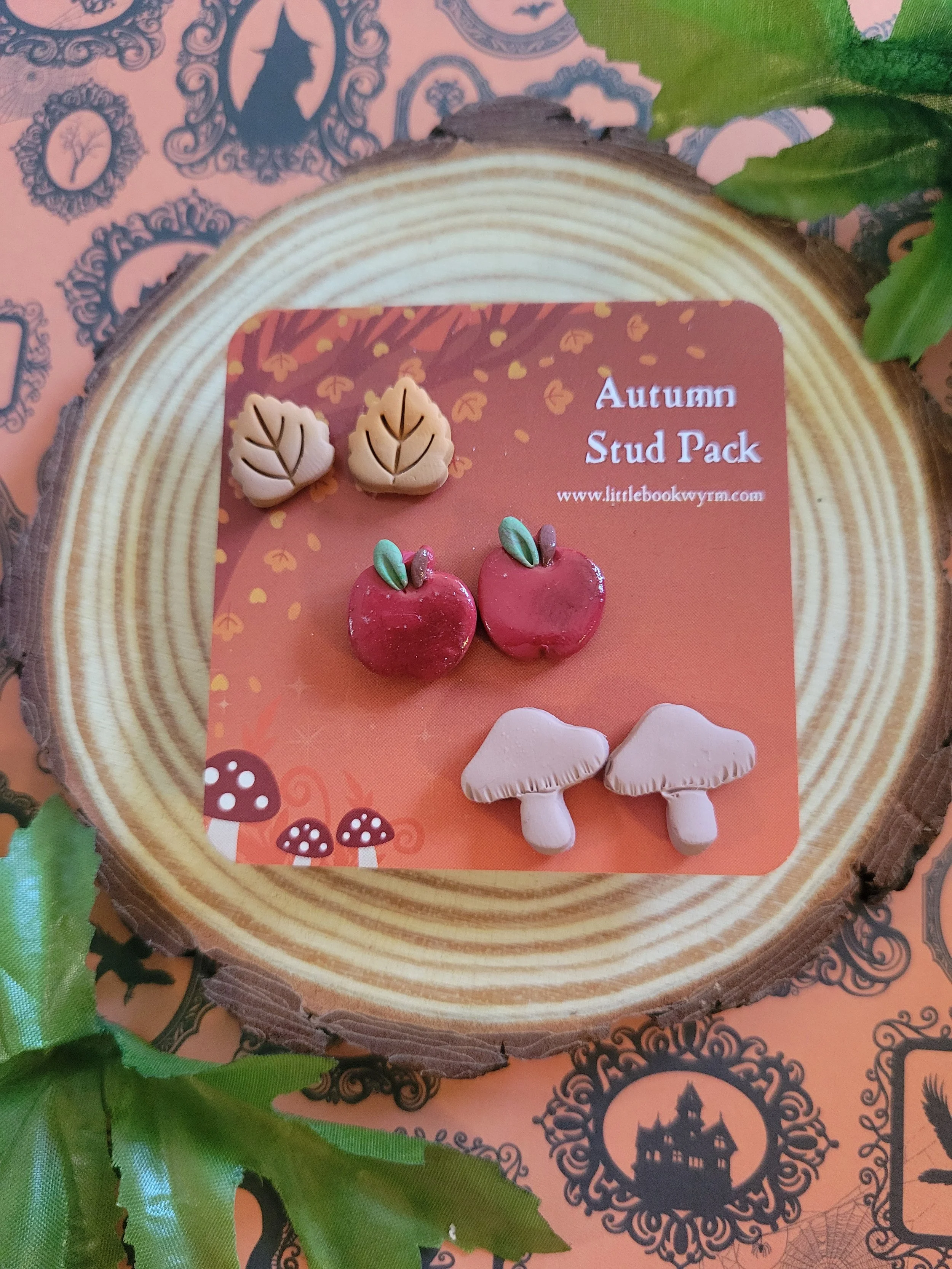 These themed stud packs come in 6 different designs and include three sets of handmade polymer clay studs on stainless steel stud posts.