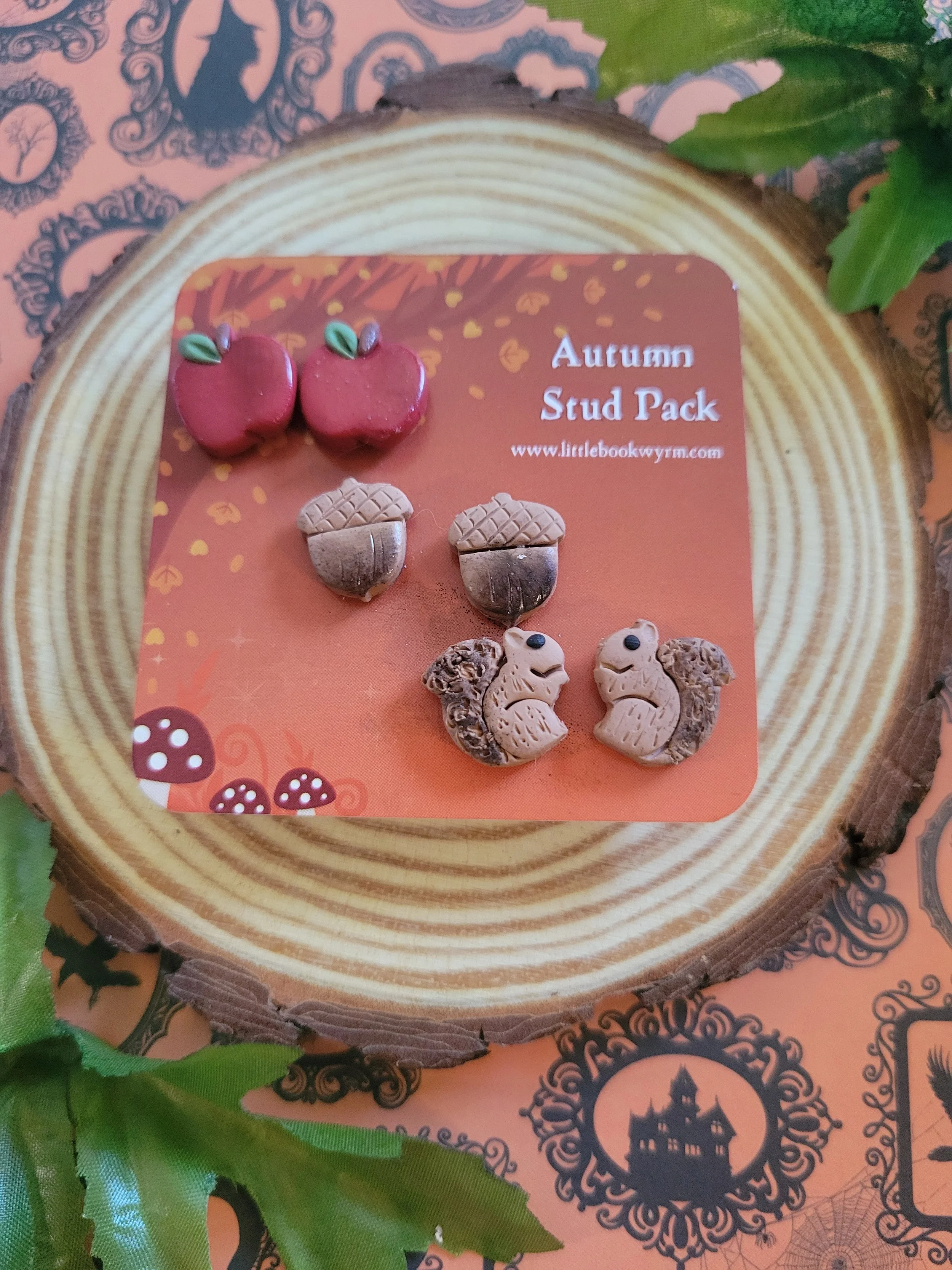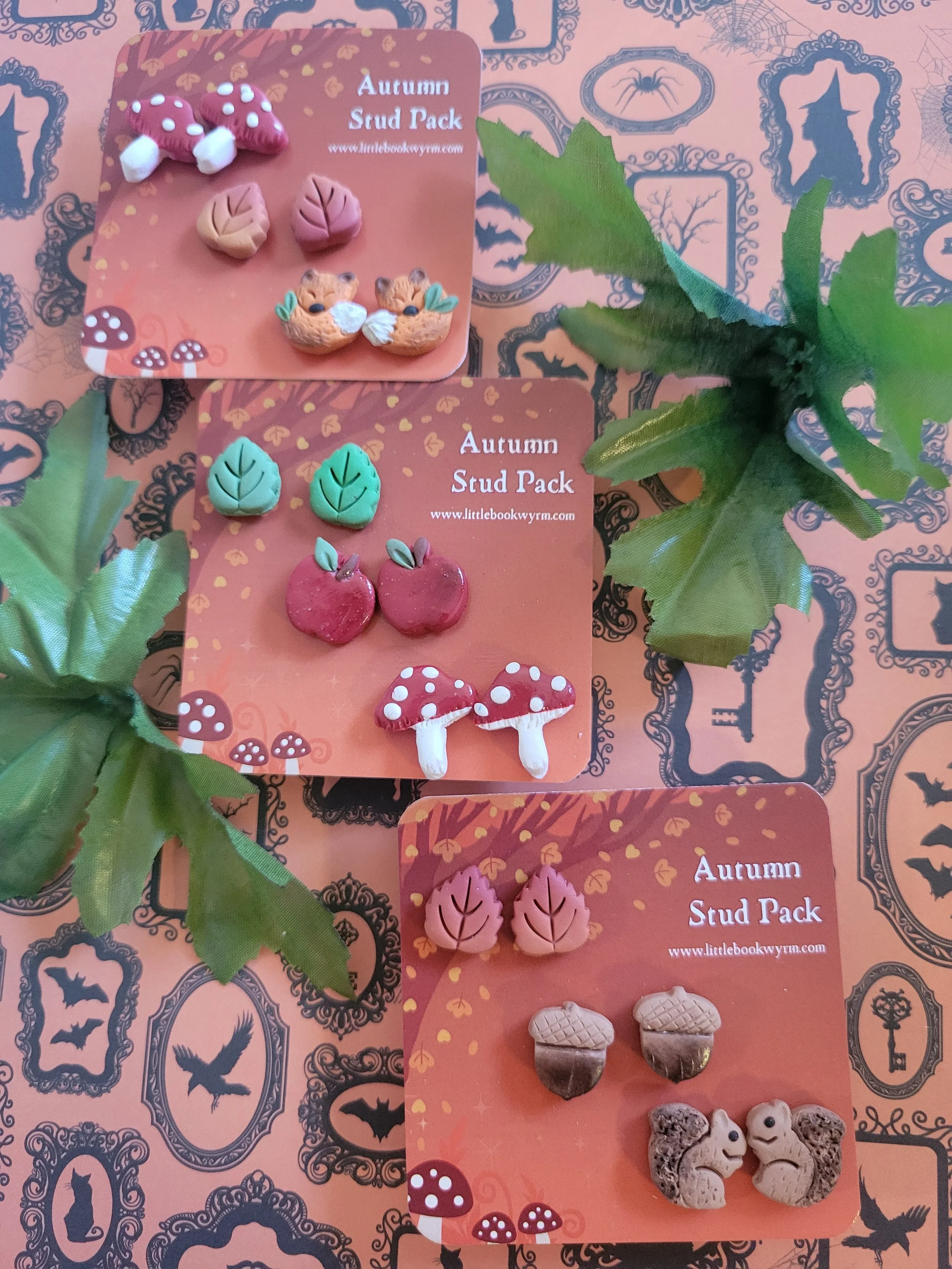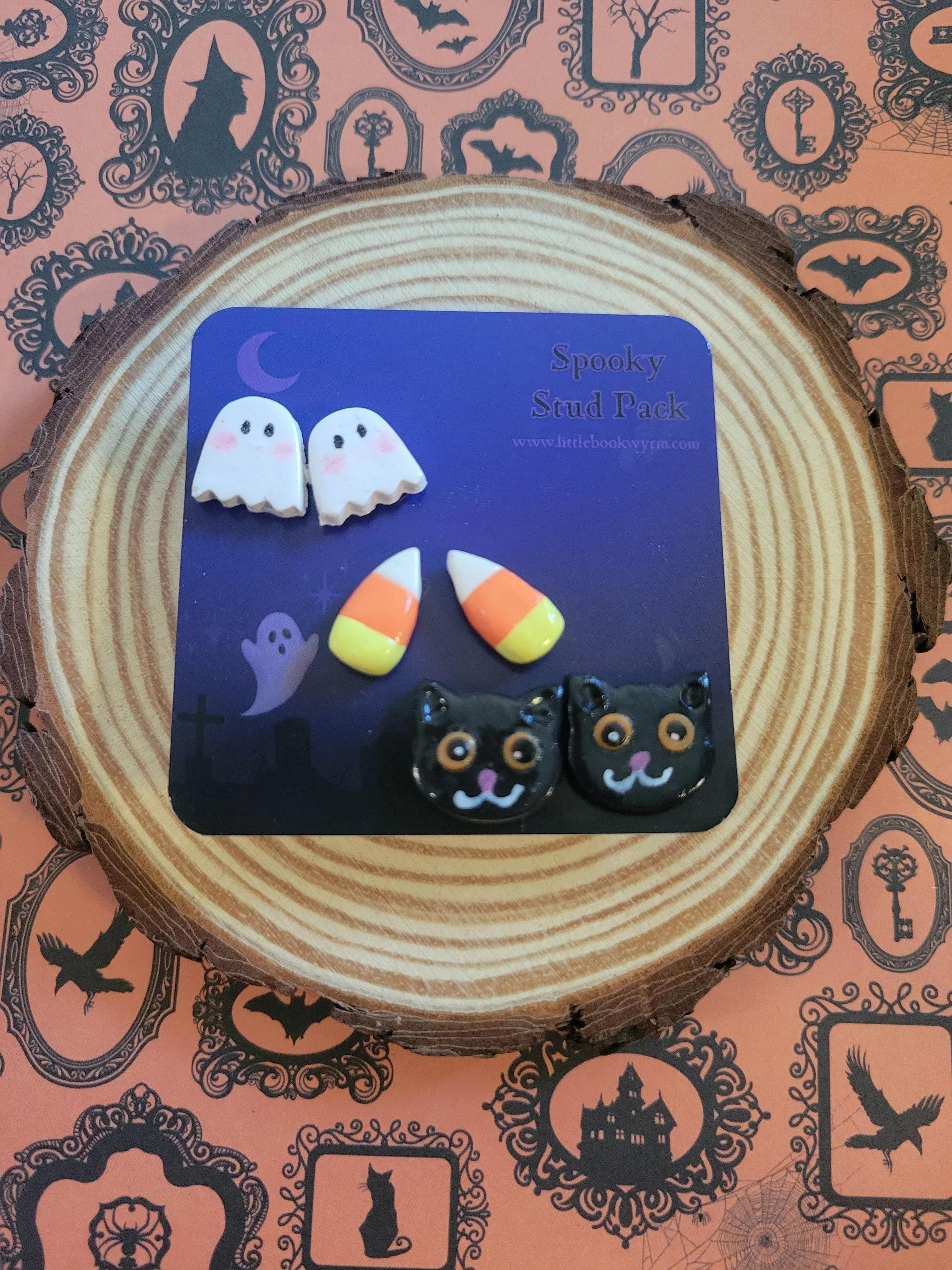 These themed stud packs come in 6 different designs and include three sets of handmade polymer clay studs on stainless steel stud posts.