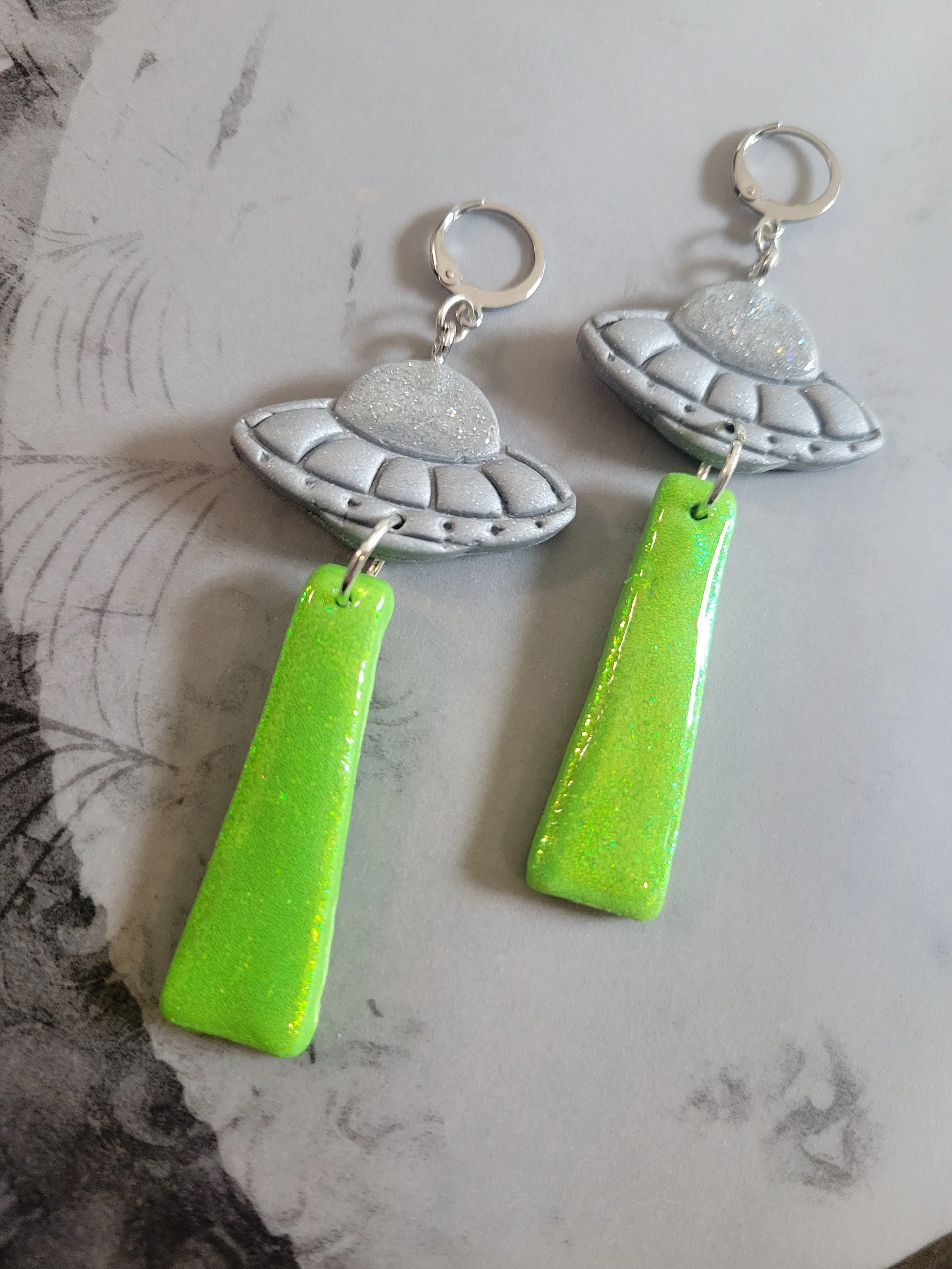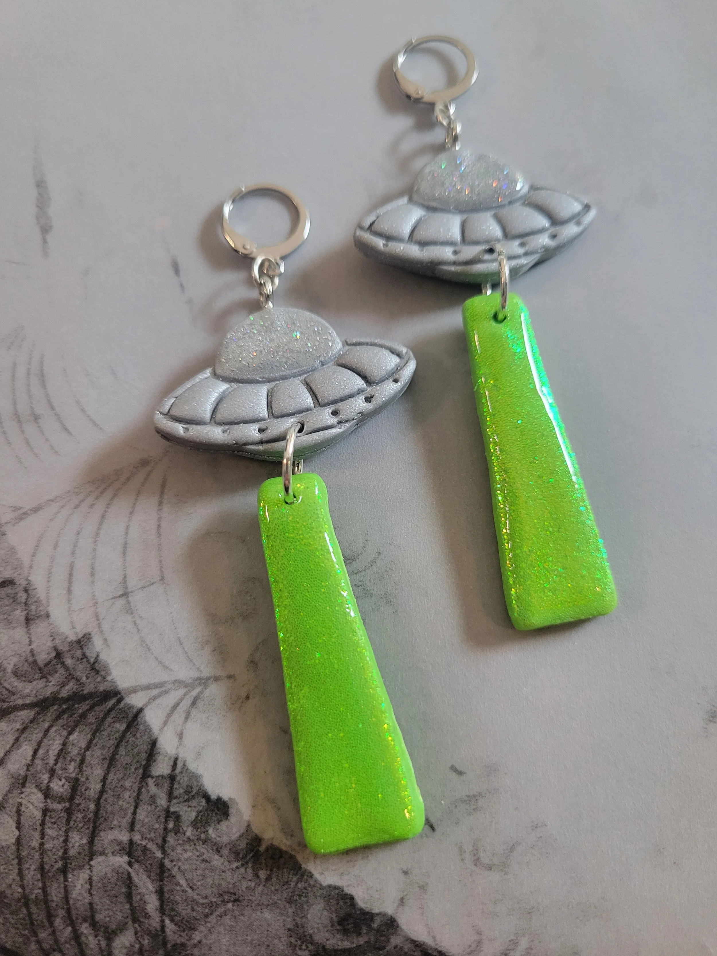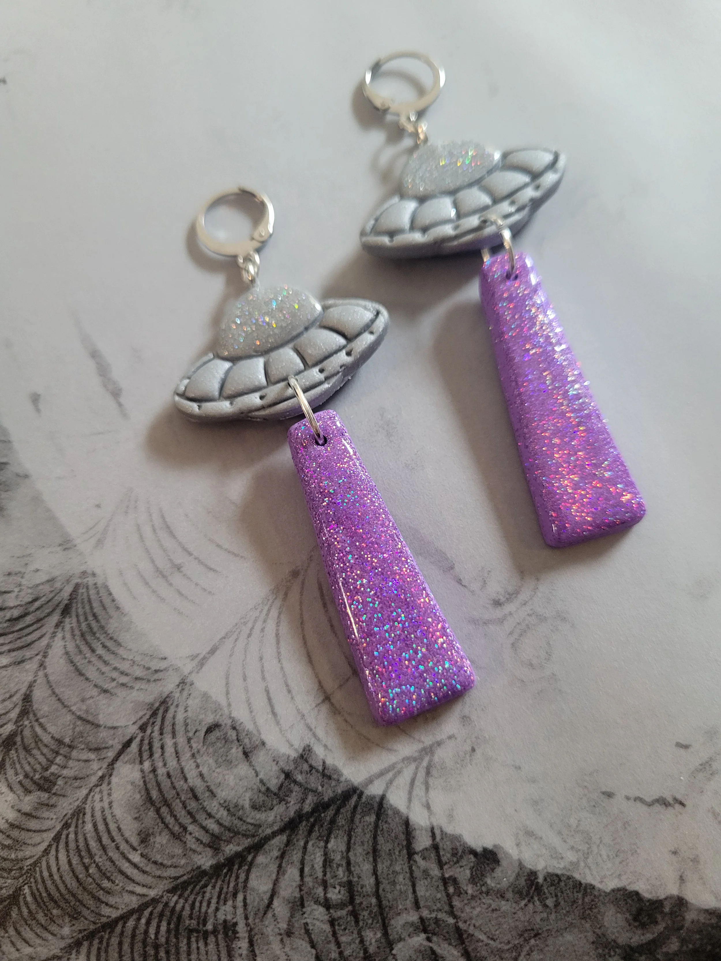 These full moon earrings are made from a textured blend of translucent, white and opal clay to give a full moon effect. They also glow brightly under UV light.